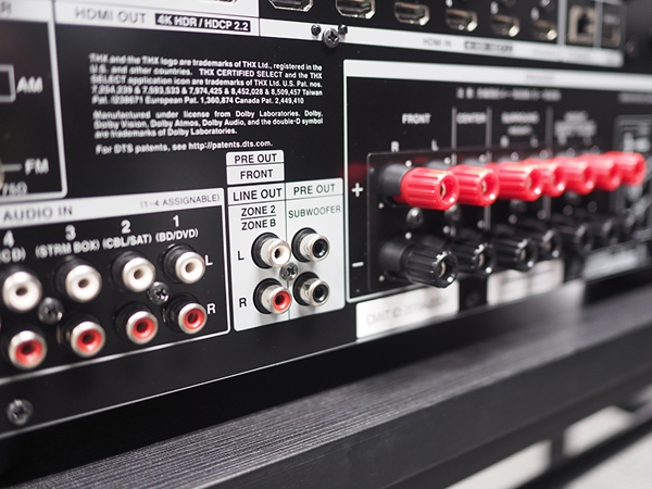 至于背面板,其实和大多数的AV放大器没有太大的区别,配有6组HDMI输出接口,支持HDR10、Dolby Vision及HLG的HDR视频格式、BT.2020 4K标准、4K/60Hz(HDCP 2.2)直接传输。至于其他数字音频接口也不会少,包括2组数码输入(光纤和同轴)、4组模拟RCA输入、黑胶唱盘输入、超低音音箱输出以及7.2声道音箱接口端子和USB接口等等,功能齐全,使用方便,足以满足绝对大多数用家的使用需求。另外,还内置Wi-Fi模块及蓝牙等无线传输技术,从AirPlay、数码流播放、网络电台到固件更新等各式网络应用都能因此变得轻而易举。而且TX-NR696还支持多房间播放功能,利用自带的Zone 2输出功能,可以把不同的音源通过放大器传输到带有RCA模拟线路输入的设备中,将要播放的音乐分享到家中其他房间的音箱,实现多房间播放。