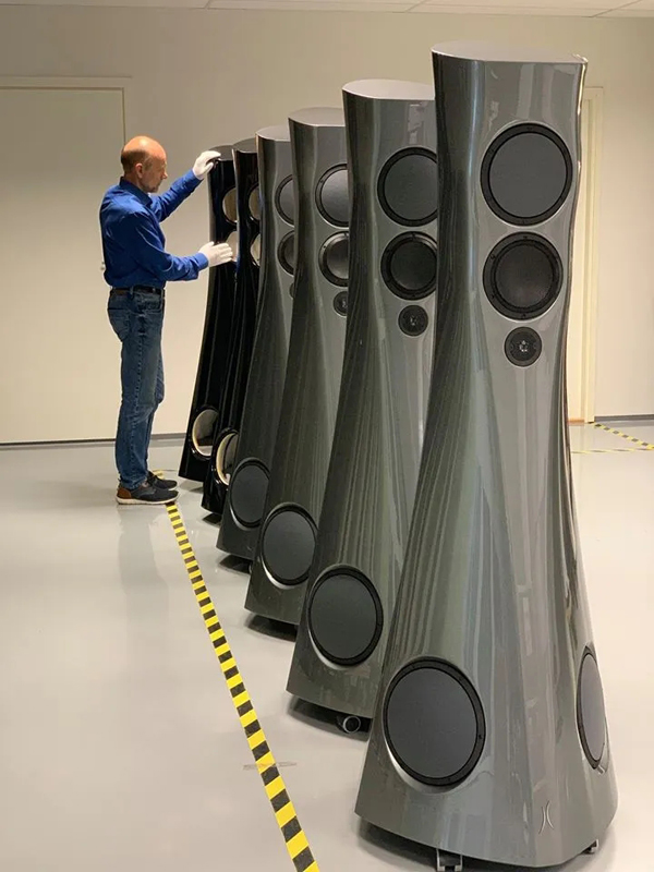 爱思特浓以箱体曼妙的曲线著称。为了配合家居环境、彰显个性化,爱思特浓还提供了各式或炫或雅的色彩。钢琴黑、白,磨砂黑、白,钴蓝、深紫、炫彩红……每一种颜色都经过上漆、打磨、再上漆、再打磨,一层一层,耗费数个星期方成。别忘了,爱思特浓的设计者是Alfred,爱思特浓的执掌者是Alfred的两个女儿Alissa和Kristiina,漂亮是必须的!